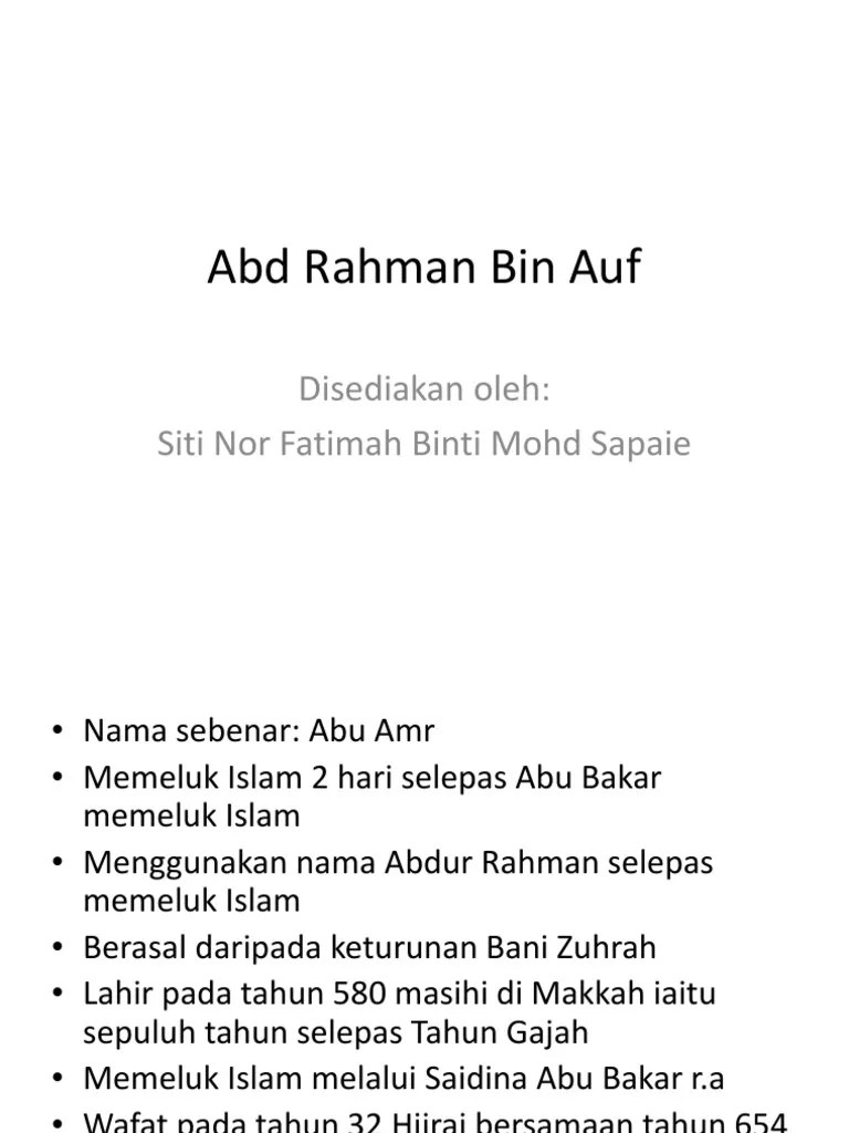 Biodata Abdul Rahman Bin Auf Tingkatan 3 : Abd Rahman Bin Auf Pdf